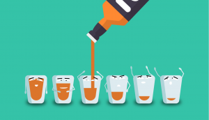 Se forma una fila de 6 vasos y se llenan de más a menos, de izquierda a derecha, quedando el de la izquierda a rebosar y el de la derecha prácticamente vacío.